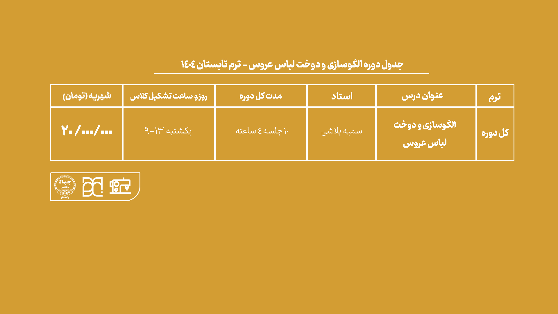 نام ارائه دهنده دوره: جهاد دانشگاهی واحد هنر