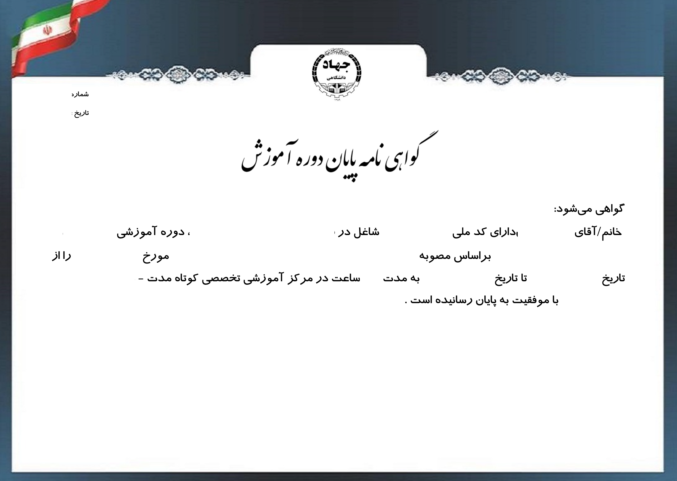 در پایان دوره، شما مدرک معتبر و قابل ترجمه جهاد دانشگاهی دریافت خواهید کرد که دارای اعتبار رسمی بوده و برای مهاجرت و ارائه بینالمللی نیز قابل استفاده است. این دوره گزینهای مناسب برای شماست اگر به دنبال یادگیری تخصصی، افزایش درآمد و ورود جدی به بازار کار طراحی طلا و جواهرات هستید.